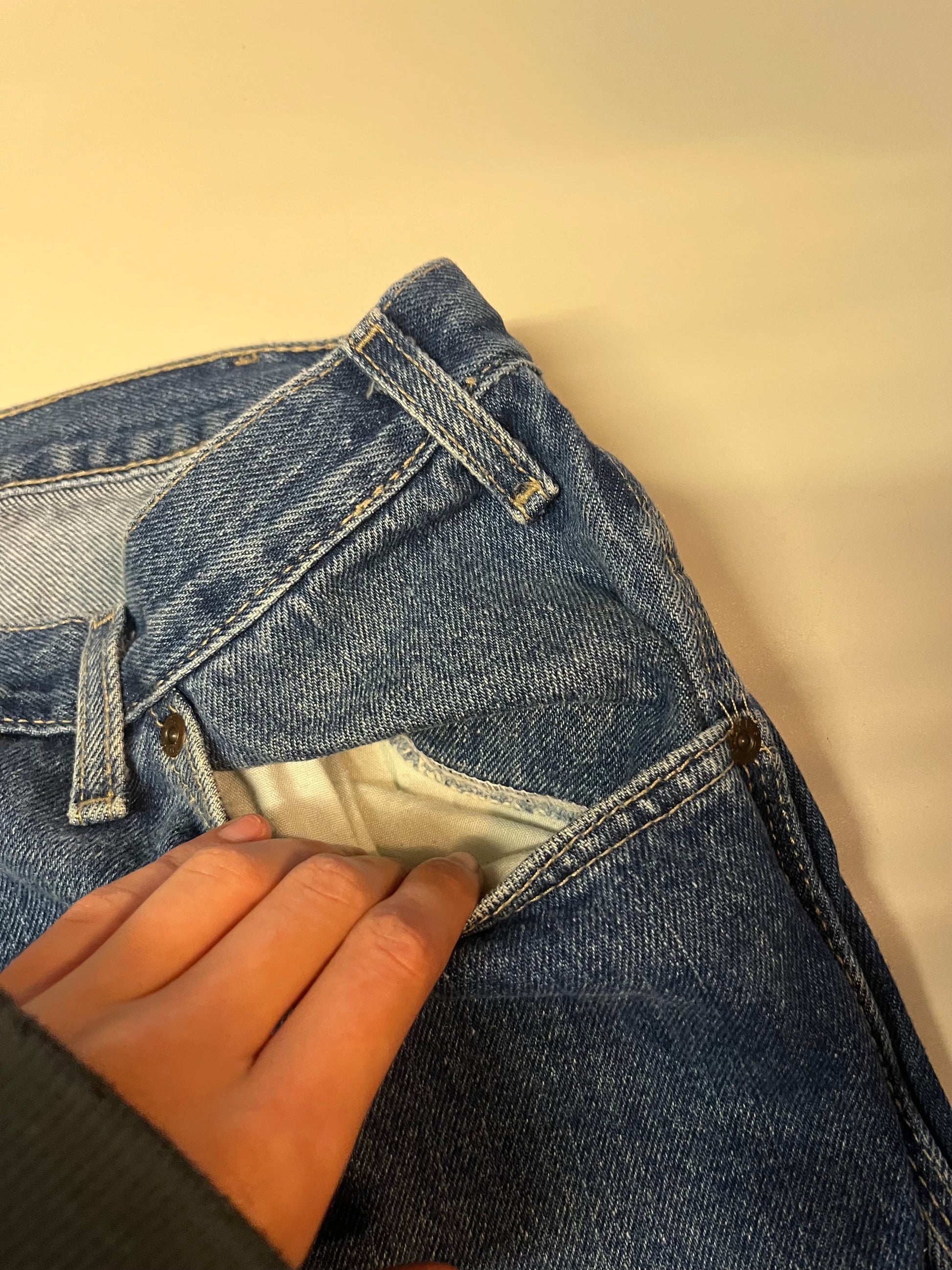 Hinweis: Da es sich um Vintage-Kleidung handelt, können vereinzelt noch leichte Spuren von Hunde- oder Katzenhaaren vorhanden sein, da die Vorbesitzer möglicherweise Tiere im Haushalt hatten. Wir waschen jedoch jedes Teil vor dem Verkauf gründlich, sodass in der Regel keine oder nur minimale Spuren mehr vorhanden sind. Wenn Sie allergisch auf Tierhaare reagieren, bitten wir Sie, dies zu berücksichtigen. Für alle anderen Käufer besteht kein Grund zur Sorge.