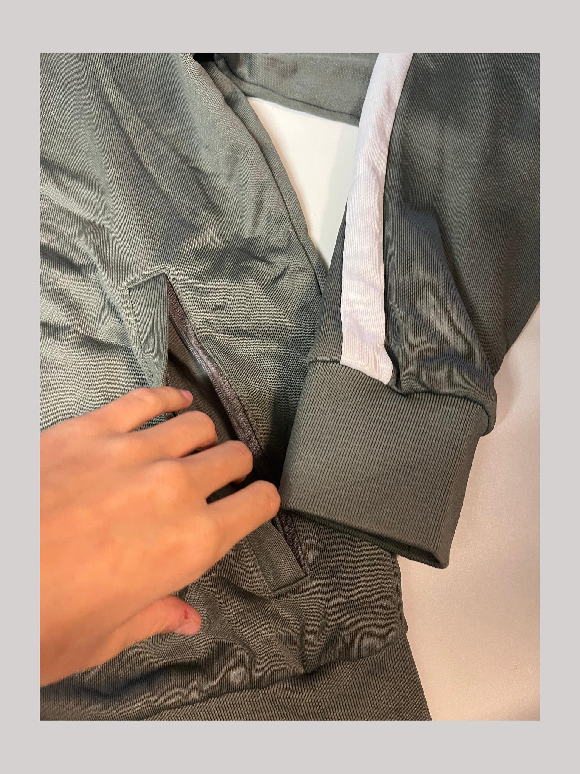 Die Breite der Trackpants kann mit dem Bändel in der Hose individuell verstellt werden.