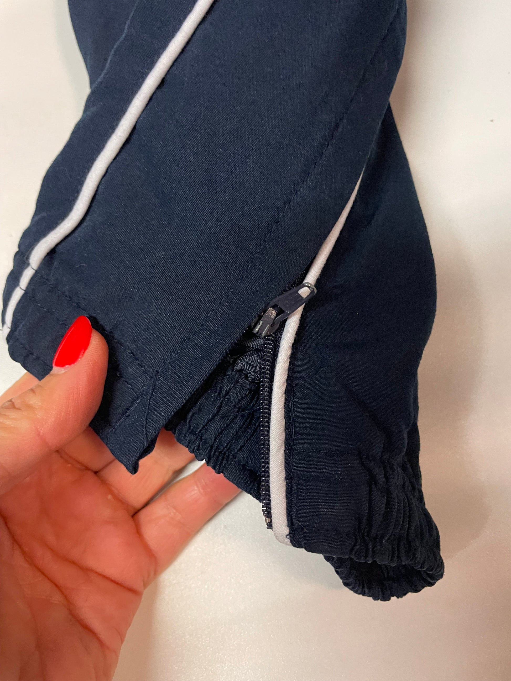 Die Breite der Trackpants kann mit dem Bändel in der Hose individuell verstellt werden.